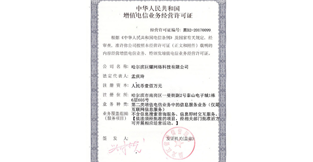 | 哈爾濱巨耀網絡科技有限公司·版權所有 | 地址:哈爾濱市南崗區西大直街118號哈特大廈17層 |